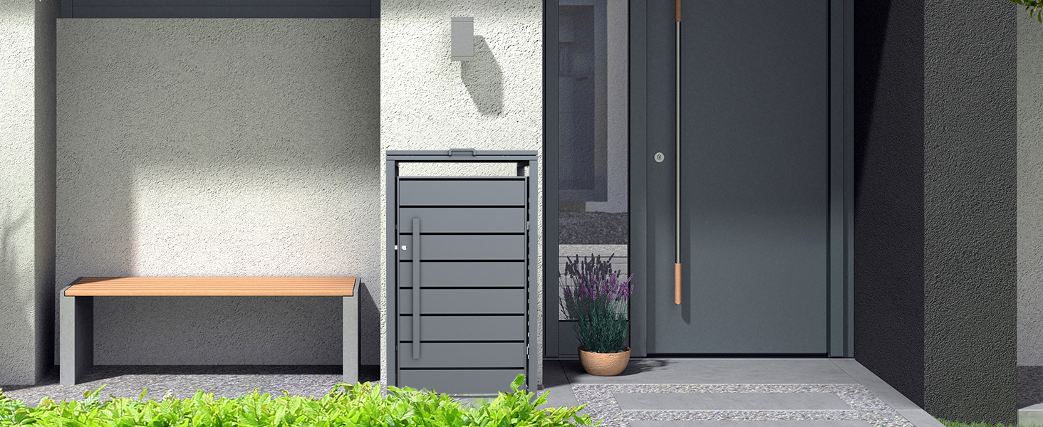 Die Garten Müllbox aus verzinktem Stahl bietet nicht nur eine erstklassige Robustheit, sondern schützt Ihre Mülltonnen auch optimal vor Witterungseinflüssen. Die anthrazitgraue Pulverbeschichtung sorgt für zusätzlichen Rost- und Korrosionsschutz. Mit ihrer glatten Oberfläche ist die Müllbox besonders pflegeleicht und lässt sich mühelos reinigen – ideal für den dauerhaften Einsatz im Freien.