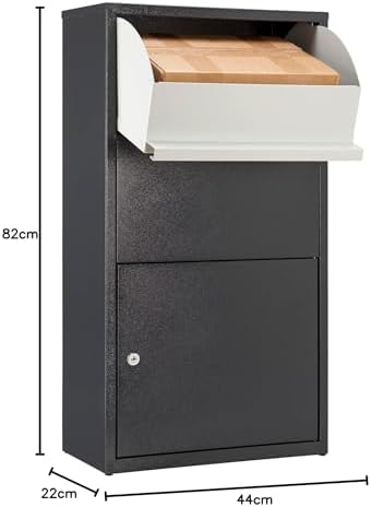 Unser Paketkasten ist perfekt geeignet für Pakete mit den Abmessungen bis zu 39x30x13 cm. Dies macht ihn zur idealen Lösung für die Lagerung von mittelgroßen Paketen, Päckchen und sogar großen Briefumschlägen sowie Ordnern und Unterlagen. Sie erhalten Ihre Sendungen rund um die Uhr, ohne sich um unzuverlässige Zustellungen kümmern zu müssen.