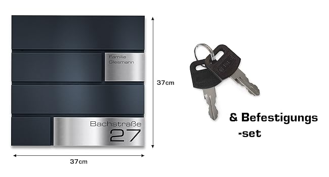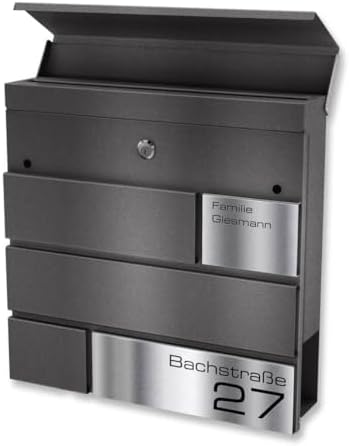 Metzler Briefkasten G in Anthrazit - Pulverbeschichtet RAL 7016 - Elegantes Design mit Gravur für Wände - 37x37x10,5 cmMetzler Briefkasten G in Anthrazit – Pulverbeschichtet RAL 7016 – Elegantes Design mit Gravur für Wände – 37x37x10,5 cm