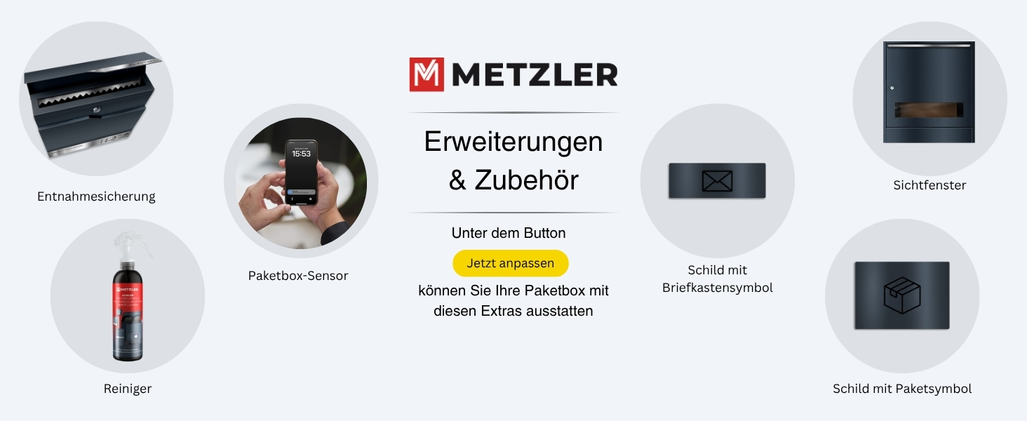 Metzler Briefkasten mit Paketfach, abschließbar, wetterfest und personalisierbar - ideal für Garten und EingangsbereichMetzler Briefkasten mit Paketfach, abschließbar, wetterfest und personalisierbar – ideal für Garten und Eingangsbereich