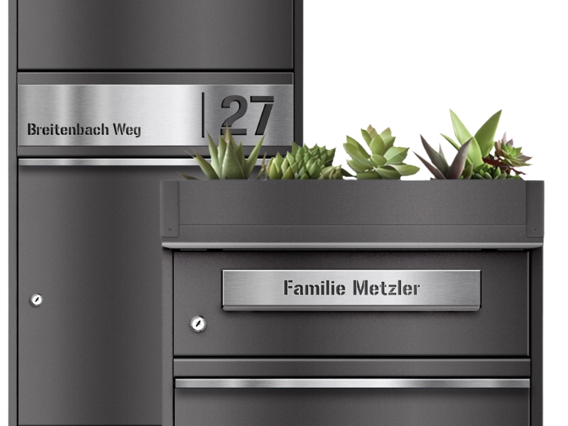 Das personalisierbare Edelstahl-Namensschild mit 3D-Lasergravur verleiht dem Briefkasten eine individuelle Note. Neben der klaren Namenskennzeichnung wird der Briefkasten somit auch zu einem stilvollen Hingucker in Ihrem Außenbereich.