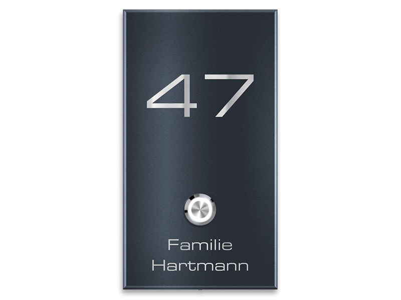 Metzler Edelstahl Türklingel V2A - Modernes Design in Anthrazit RAL 7016 mit gravierbarem LED-Taster für wasserdichte MoMetzler Edelstahl Türklingel V2A – Modernes Design in Anthrazit RAL 7016 mit gravierbarem LED-Taster für wasserdichte Mo