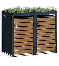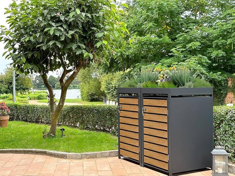 Metzler Mülltonnenbox 2er 240L Anthrazit & Holzoptik mit Pflanzdach für Garten – Rostfrei & abschließbar!Metzler Mülltonnenbox 2er 240L Anthrazit & Holzoptik mit Pflanzdach für Garten – Rostfrei & abschließbar!