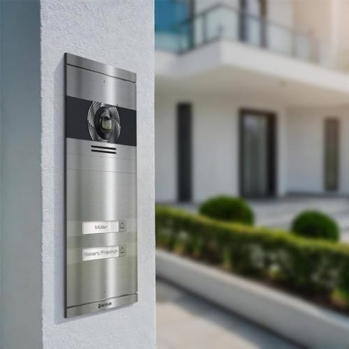 Ausgestattet mit einer hochmodernen 2MP Ultraweitwinkel-Kamera, ermöglicht unsere Türsprechanlage gestochen scharfe Full-HD-Bilder. Das erweiterte Sichtfeld von 146° horizontal und 82° vertikal bietet Ihnen eine umfassende Übersicht über Ihren Eingangsbereich. So verpassen Sie keinen Moment und können jederzeit den Überblick über das Geschehen vor Ihrer Tür behalten.